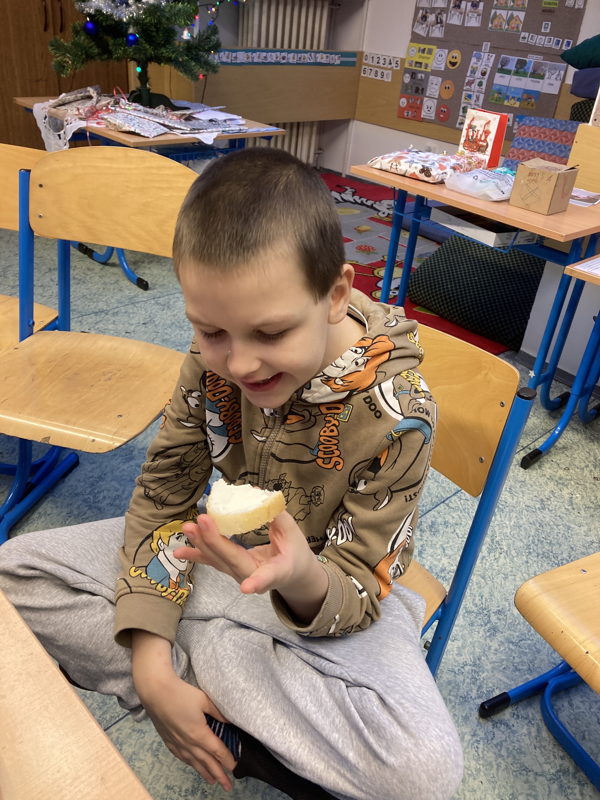 Celý advent čekaly všechny děti z naší školy každé ráno na Hvězdný úkol. Získat Hvězdu důvěry byla velká výzva. K adventnímu ztišení přece patří povídání o našich pocitech a naslouchání přáním a pocitům kamarádů. Všichni přece chceme, aby nám ve škole bylo hezky. Překvapení v adventním kalendáři den za dnem ubývala tak, jak se zkracoval čas do Vánoc. Letošní advent byl ale trochu jiný, letos ho ovládlo nacvičování na historicky první vystoupení naší školy v Tanvaldě na Svařáku. Školou se nesly písně dětí, pasáčků, andělů, Tří králů a zvířátek. Ve třetím ročníku každý den pobíhali andělé. Napětí každým dnem stoupalo, cukroví bylo napečeno, pod stromečkem se začaly objevovat dárečky. A pak nastal ten vytoužený den. Ale než mohly děti dárky rozbalit, připomněly si naše vánoční zvyky. Pouštěly lodičky, aby věděly, jak daleko se dostanou příští rok, rozkrojily jablíčko a hvězdička jim vyvěštila zdraví, připily si na zdraví a popřály si krásný nový rok. A pak už hurááá na rozbalování dárků, vždyť to mají děti na Vánocích přece nejraději.