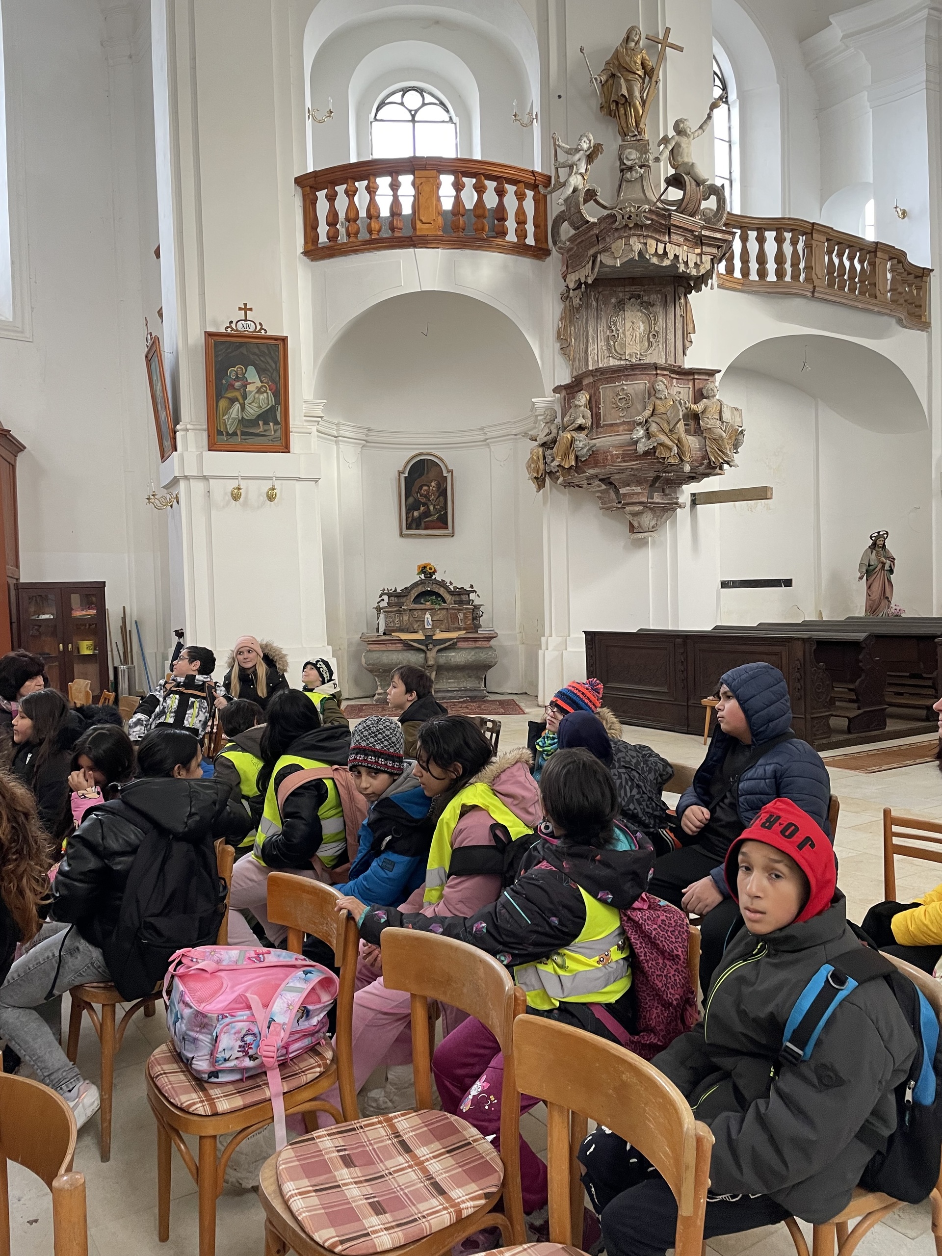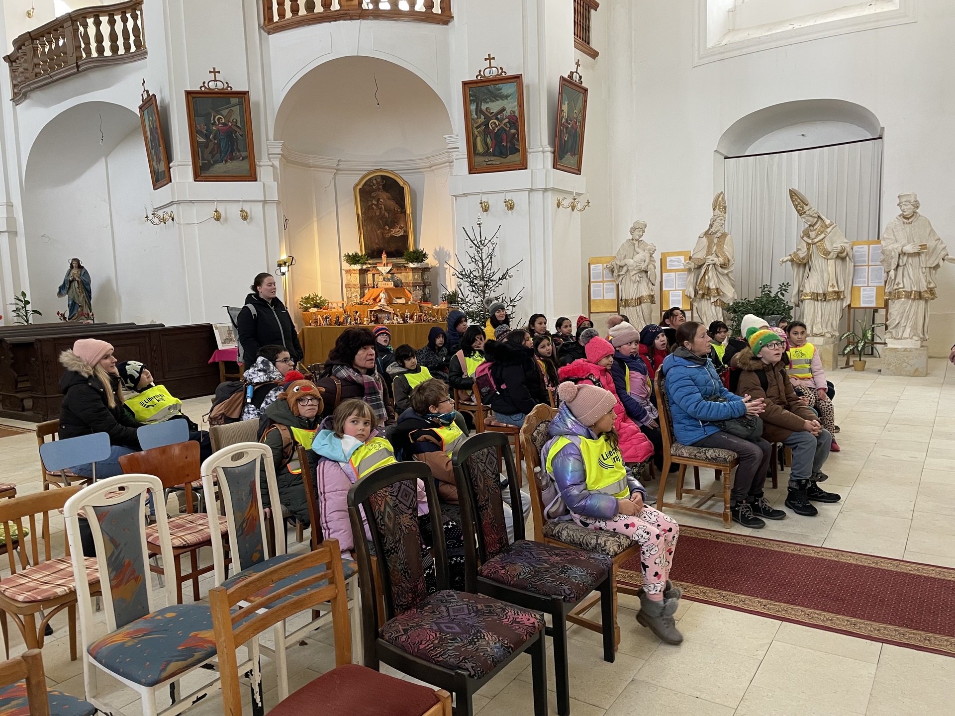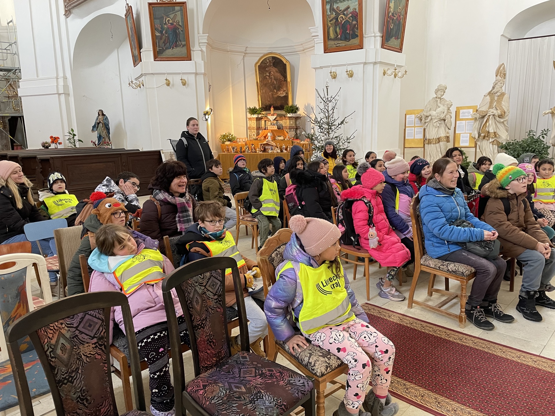 V době adventu se také žáci prvního stupně vydali na tradiční návštěvu kostela. Protože v Kostele Sv. Petra a Pavla v Horním Tanvaldu probíhají opravy, přivítali nás tentokrát v Kostele Sv. archanděla Michaela ve Smržovce. Pan farář Šimáček provedl děti interiérem a připomenul ten krásný, dva tisíce let starý příběh o narození Ježíška. Dětem tím alespoň trochu pomohl zkrátit čekání na vánoční svátky a zklidnit dětskou nedočkavost.