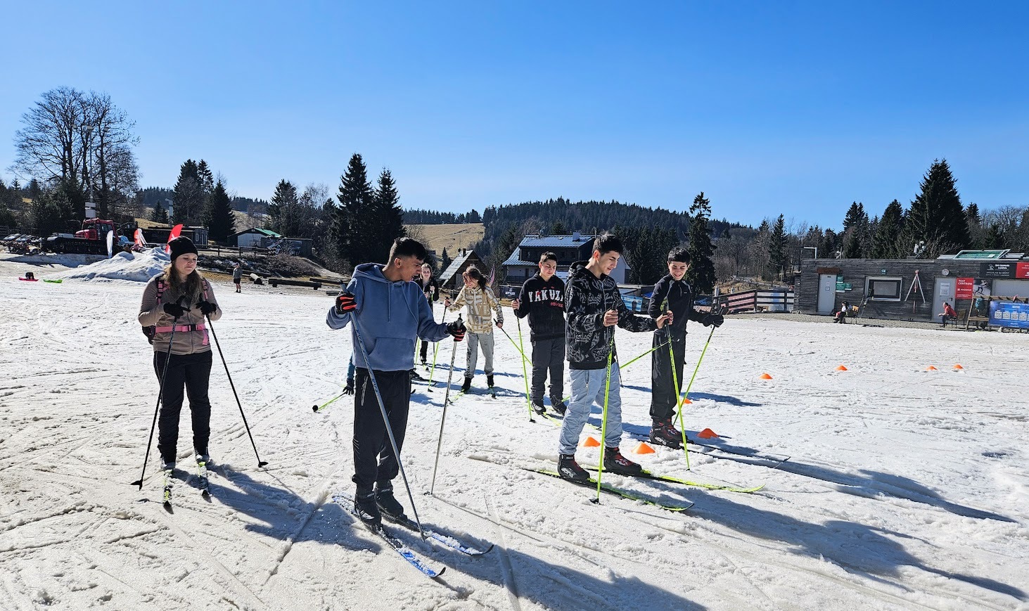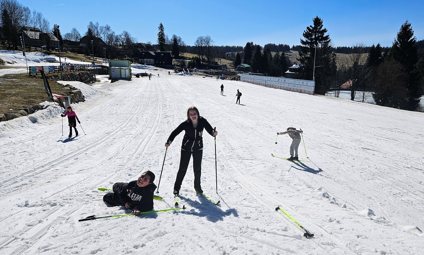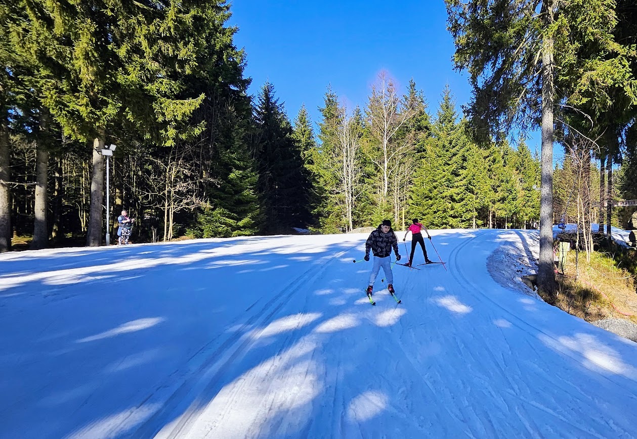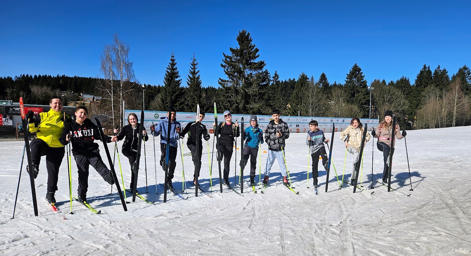 Letošní zimní sezónu jsme zakončili skvěle na stadionu v Bedřichově, kde nás přivítalo sluníčko a tím spojené jarní lyžování. I když už jaro klepe na dveře, podmínek jsme využili na maximum a vyzkoušeli jsme si vše od techniky jízdy z kopce, obratnost na sněhu a jízdu na prudkém kopci na stadionu. Velkým zážitkem byla jízda na „velbloudech“ z nastříkaného technického sněhu, která prověřila stabilitu každého z nás. Nejnapínavějším částí lyžování byla společná štafeta. Do té se s velkým nasazením zapojili nejen žáci, ale i učitelé, což vytvořilo skvělou soutěžní atmosféru. Celý den se nesl v duchu smíchu a vzájemné podpory, a tak jsme zimní sezónu uzavřeli tím nejlepším možným způsobem.