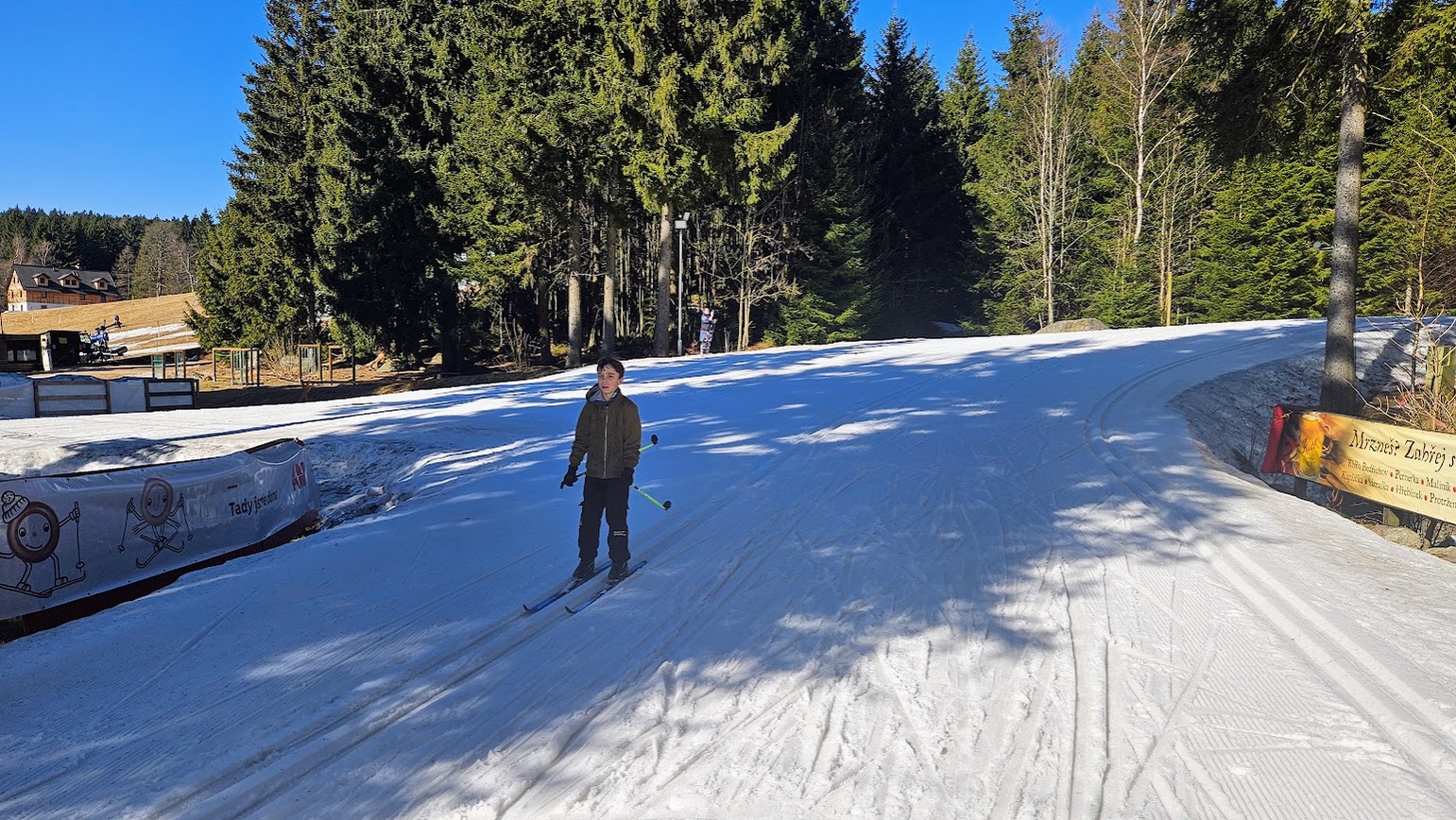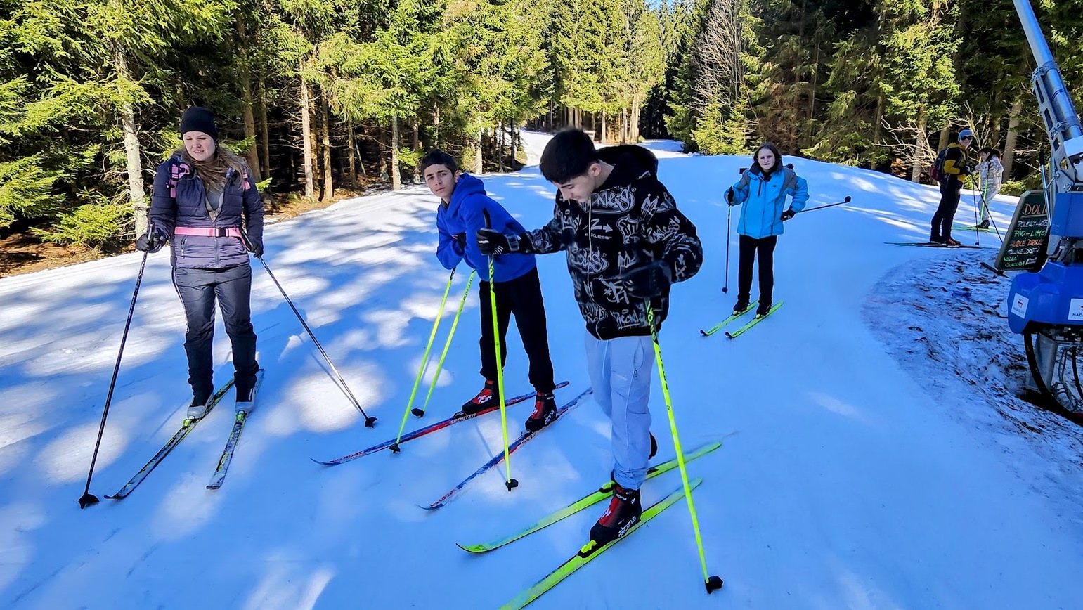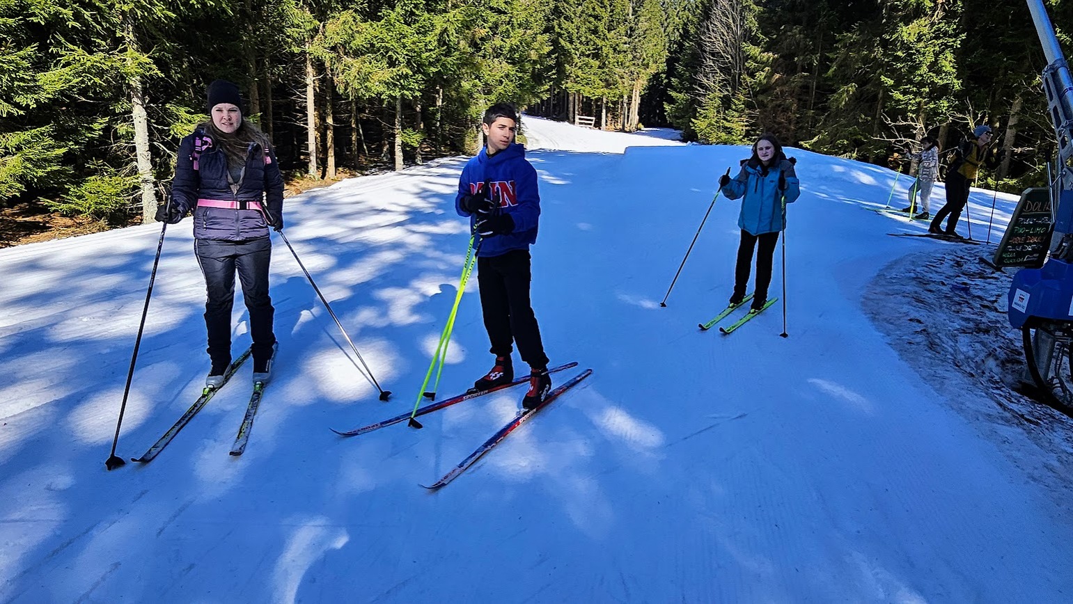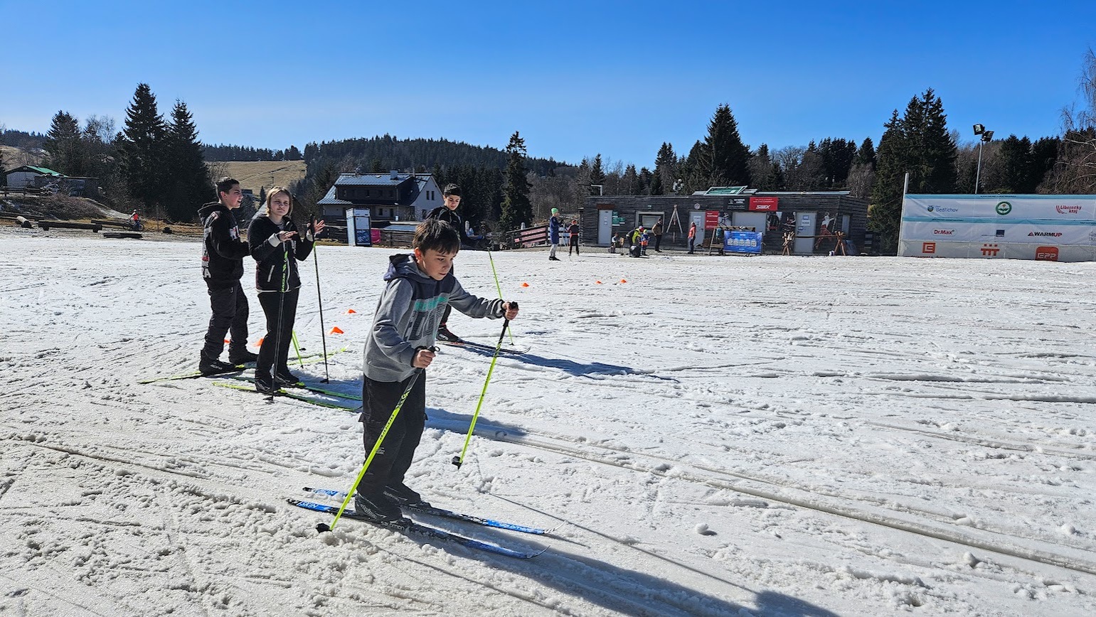 Letošní zimní sezónu jsme zakončili skvěle na stadionu v Bedřichově, kde nás přivítalo sluníčko a tím spojené jarní lyžování. I když už jaro klepe na dveře, podmínek jsme využili na maximum a vyzkoušeli jsme si vše od techniky jízdy z kopce, obratnost na sněhu a jízdu na prudkém kopci na stadionu. Velkým zážitkem byla jízda na „velbloudech“ z nastříkaného technického sněhu, která prověřila stabilitu každého z nás. Nejnapínavějším částí lyžování byla společná štafeta. Do té se s velkým nasazením zapojili nejen žáci, ale i učitelé, což vytvořilo skvělou soutěžní atmosféru. Celý den se nesl v duchu smíchu a vzájemné podpory, a tak jsme zimní sezónu uzavřeli tím nejlepším možným způsobem.
