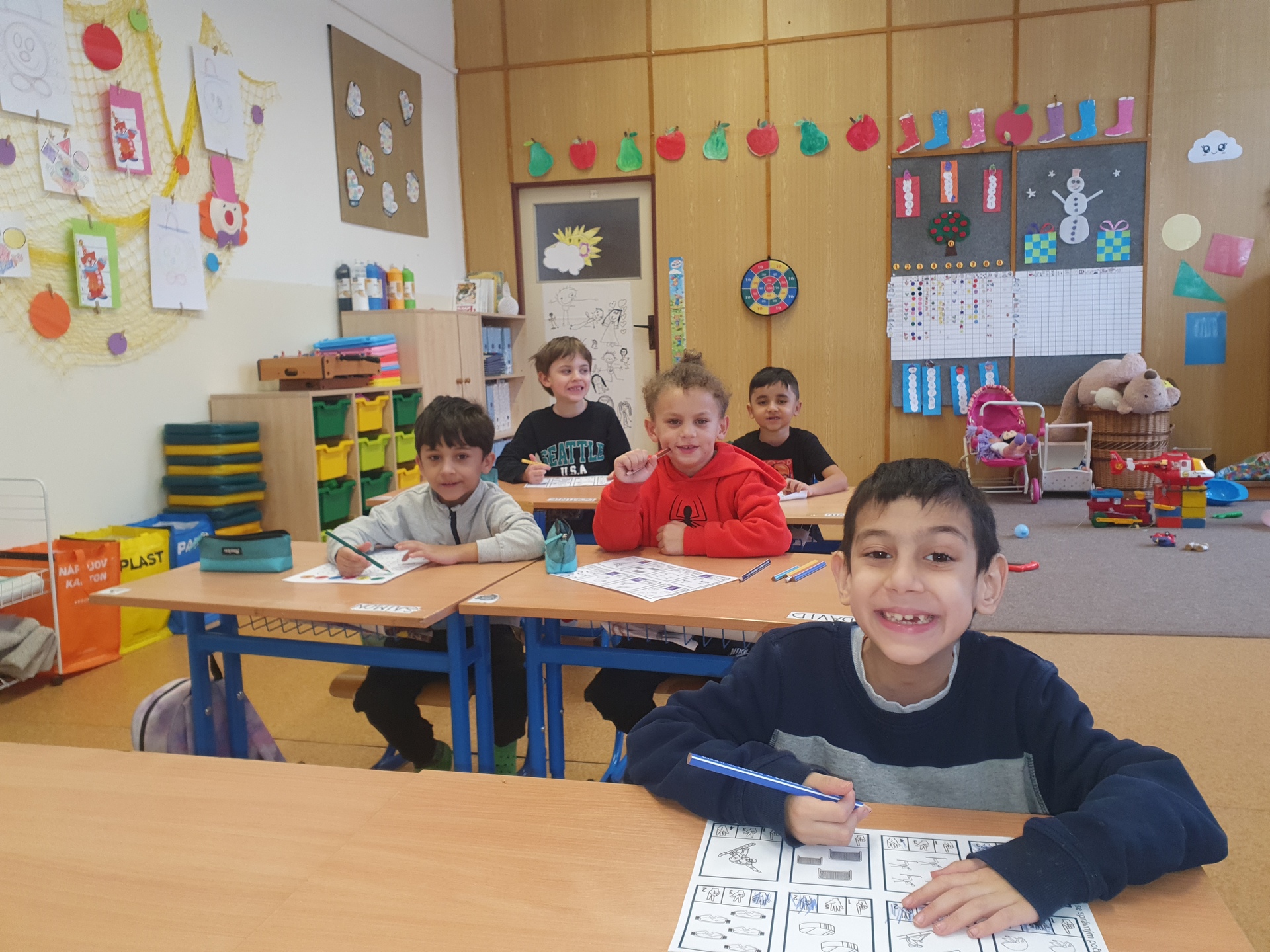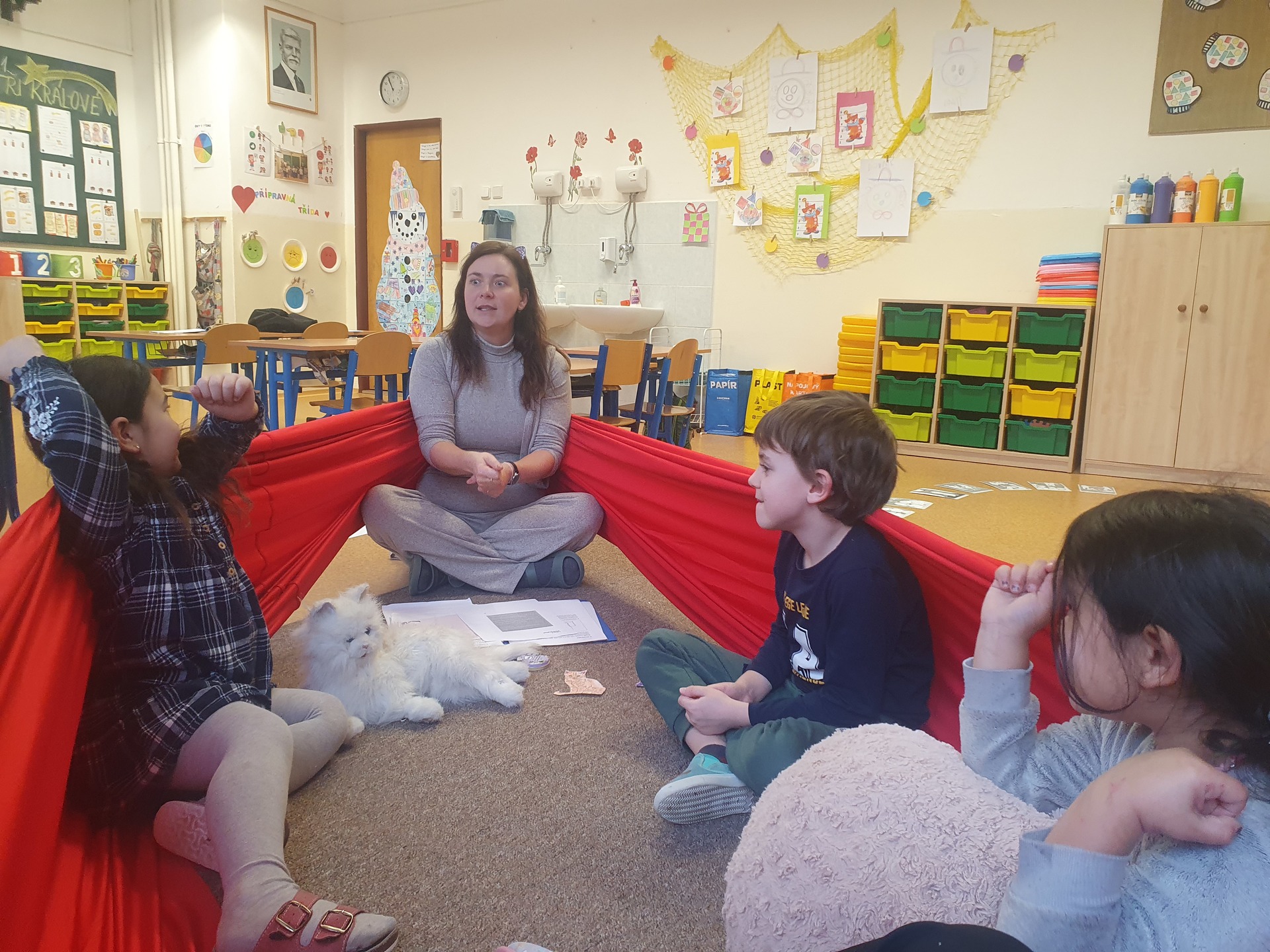 Krásná zima u nás stále pokračuje. Velkým tématem posledních dní byla zimní olympiáda. Povídali jsme si o tom, co všechno olympiáda znamená, kdo se jí účastní a jaké sporty k ní patří. Pouštěli jsme si různá videa ze skutečných závodů a dozvěděli jsme se spoustu zajímavých informací. Olympijská atmosféra dorazila i k nám do školy. Proběhlo totiž školní kolo olympiády, které jsme si moc užili. Nechybělo nadšení, radost z pohybu ani zdravé soutěžení. Velkým zážitkem bylo bruslení, pro některé děti to bylo úplně poprvé, co stály na bruslích. O to větší radost jsme měli z každého malého pokroku i odvážného krůčku na ledě. Pohyb nás baví nejen venku, ale i v tělocvičně. V posledních dnech zkoušíme skákání v pytlích, které prověřuje naši rychlost i obratnost. Trénujeme také rovnováhu, přenášíme dřevěná vajíčka na lžících a snažíme se, aby nám nespadla. Není to vůbec jednoduché, ale o to větší legrace u toho je! V naší třídě proběhl také preventivní program s paní učitelkou Luckou s názvem Kočičí zahrada. Společně jsme si povídali o kamarádství, spolupráci a o tom, jak být dobrým členem kolektivu. Program nám pomáhá budovat hezké vztahy a příjemnou atmosféru ve třídě. A na závěr máme ještě jednu krásnou novinu, do naší přípravné třídy přibyl nový kamarád. Okamžitě mezi nás skvěle zapadl a my máme velkou radost, že je součástí naší party. Zima u nás tedy rozhodně není ospalá, je plná pohybu, radosti, nových zážitků i přátelství.