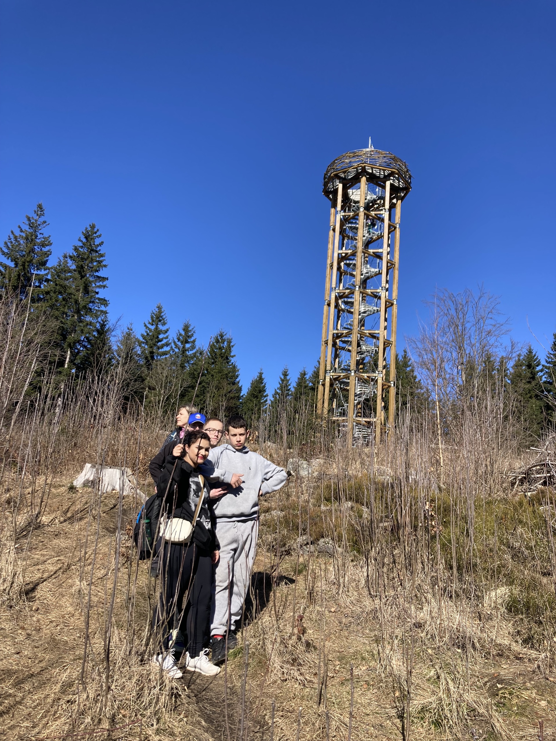 Žáci z II. stupně vyrazili před jarními prázdninami na turistický výlet. Cílem cesty byla rozhledna Světlý vrch nad Albrechticemi v Jizerských horách.