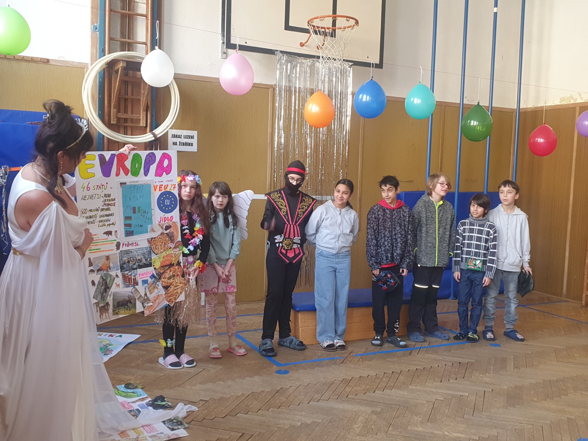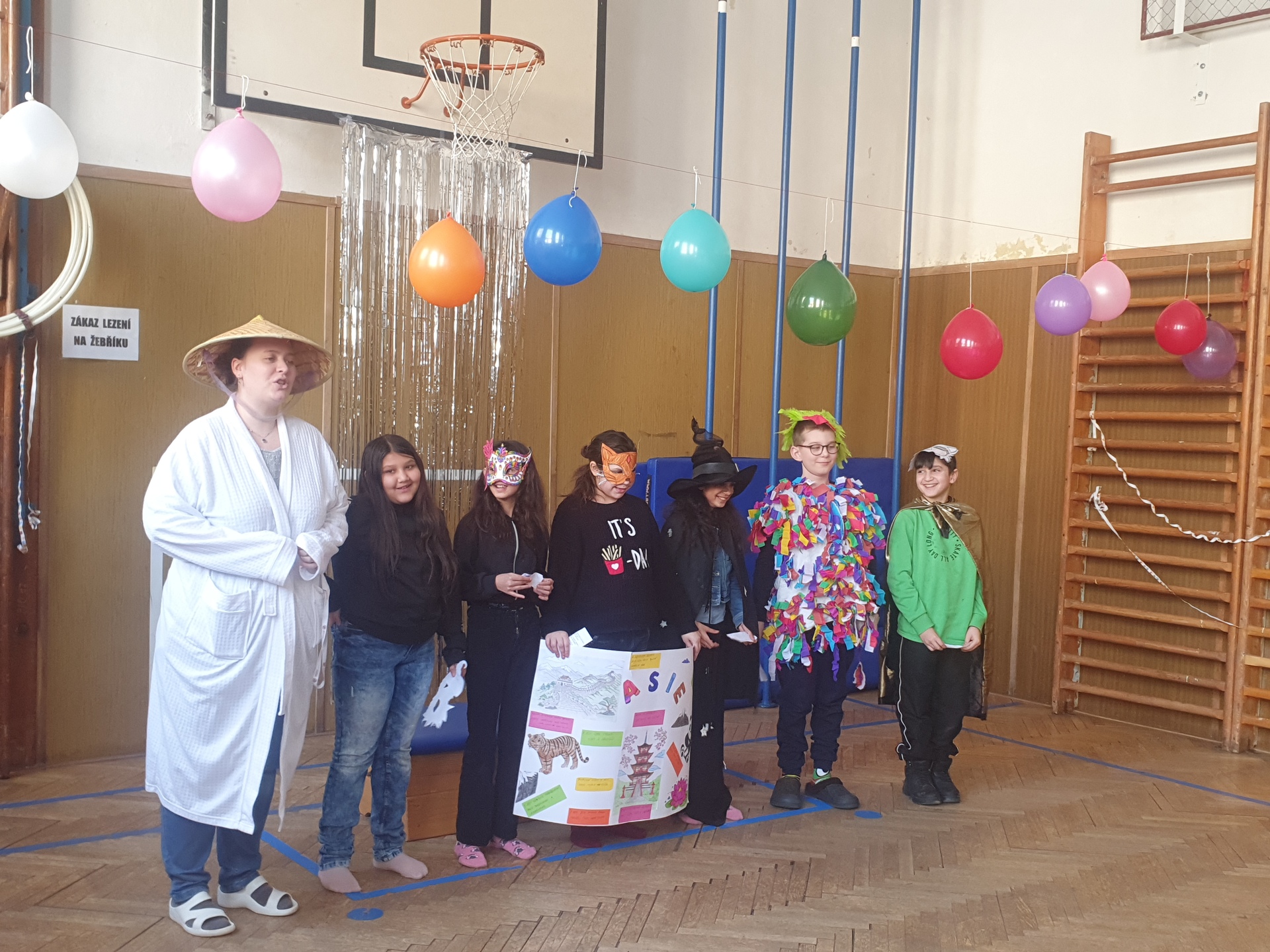 Na prvním stupni se uskutečnil veselý Olympijský karneval, kterého se zúčastnily všechny třídy včetně naší přípravné třídy. Celé dopoledne se neslo v duchu olympijských kruhů a poznávání jednotlivých kontinentů. Nejprve jsme se všichni společně sešli v tělocvičně, kde jednotlivé třídy představily své plakáty světadílů. Každá třída měla na starost jeden kontinent. Evropu, Asii, Ameriku, Afriku a přípravná třída Austrálii. Děti si připravily zajímavé informace i krásné výtvarné zpracování a ukázaly, že spolupráce jim jde opravdu skvěle. Poté jsme se přesunuli na pět stanovišť inspirovaných jednotlivými kontinenty. V Evropě jsme navštívili Itálii, zkoušeli jsme si „vyrobit“ zmrzlinu, svazovali jsme špagety a soutěžili, kdo vytvoří nejdelší špagetu. Odměnou byl kousek výborné pizzy, kterou upekla paní učitelka se svou pátou třídou. V Asii jsme si vyzkoušeli jíst hůlkami a poznávali různá koření podle vůně. V Americe nás přivítala paní učitelka v roli indiánky a společně jsme si s radostí zahráli na bubny. V Africe jsme poznávali africká zvířata a soutěžili v hodu pomerančem na koš. V Austrálii jsme si zaskákali v pytlích jako klokani a užili si spoustu legrace. Na závěr nás čekala společná diskotéka a sladká odměna. Celé dopoledne bylo plné radosti, pohybu, spolupráce i nových zážitků. Olympijský karneval jsme si všichni moc užili a budeme na něj dlouho vzpomínat.