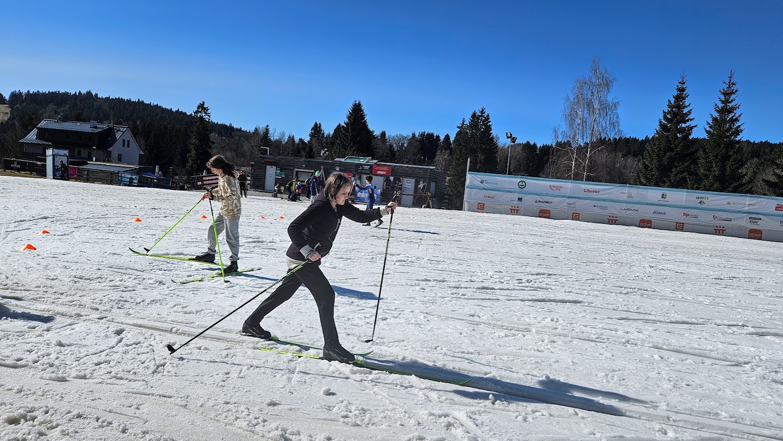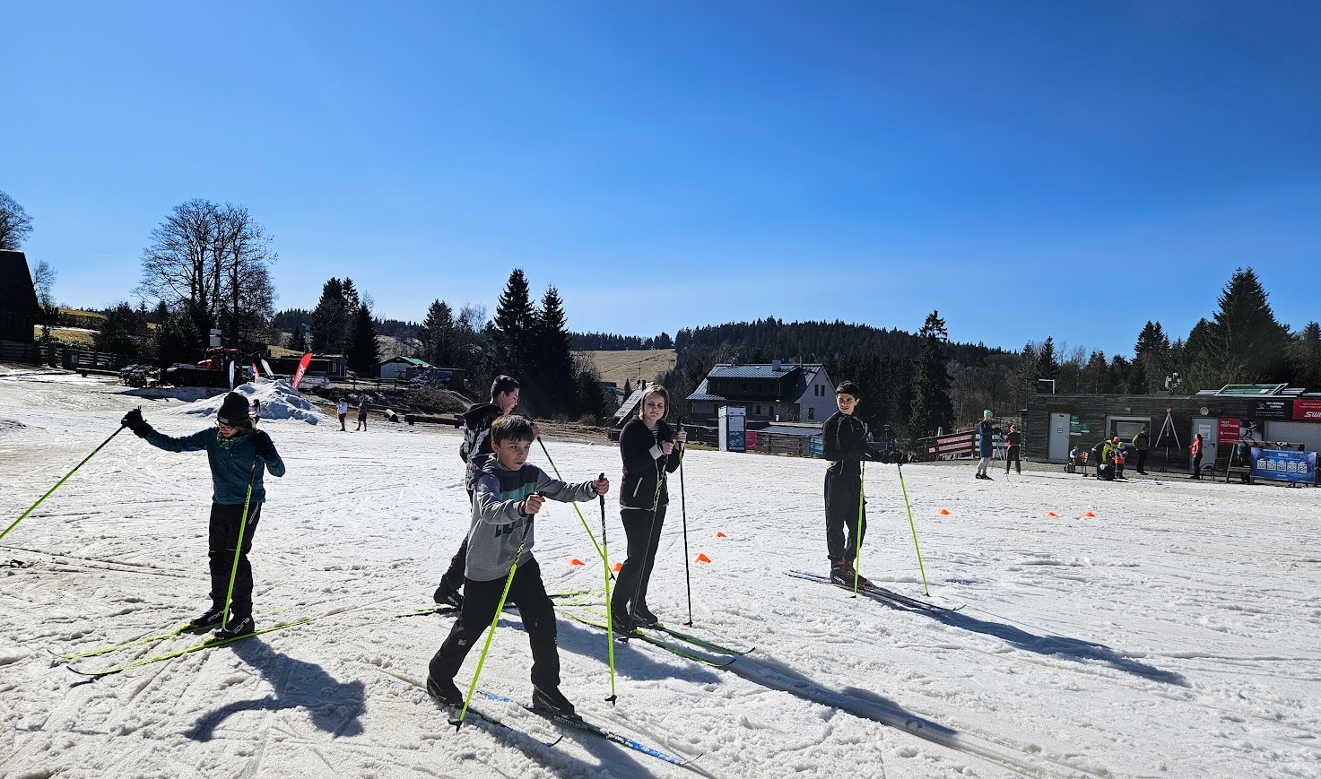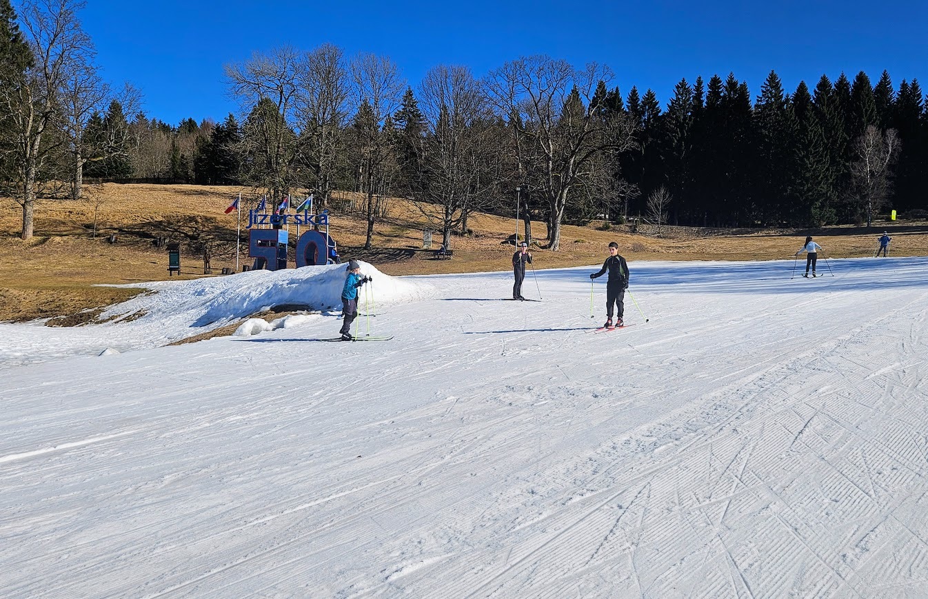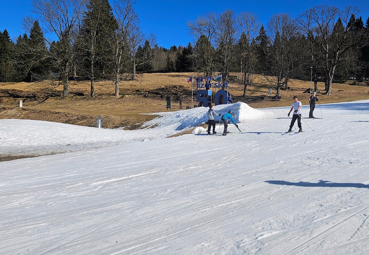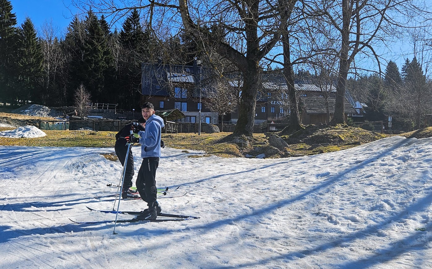 Letošní zimní sezónu jsme zakončili skvěle na stadionu v Bedřichově, kde nás přivítalo sluníčko a tím spojené jarní lyžování. I když už jaro klepe na dveře, podmínek jsme využili na maximum a vyzkoušeli jsme si vše od techniky jízdy z kopce, obratnost na sněhu a jízdu na prudkém kopci na stadionu. Velkým zážitkem byla jízda na „velbloudech“ z nastříkaného technického sněhu, která prověřila stabilitu každého z nás. Nejnapínavějším částí lyžování byla společná štafeta. Do té se s velkým nasazením zapojili nejen žáci, ale i učitelé, což vytvořilo skvělou soutěžní atmosféru. Celý den se nesl v duchu smíchu a vzájemné podpory, a tak jsme zimní sezónu uzavřeli tím nejlepším možným způsobem.