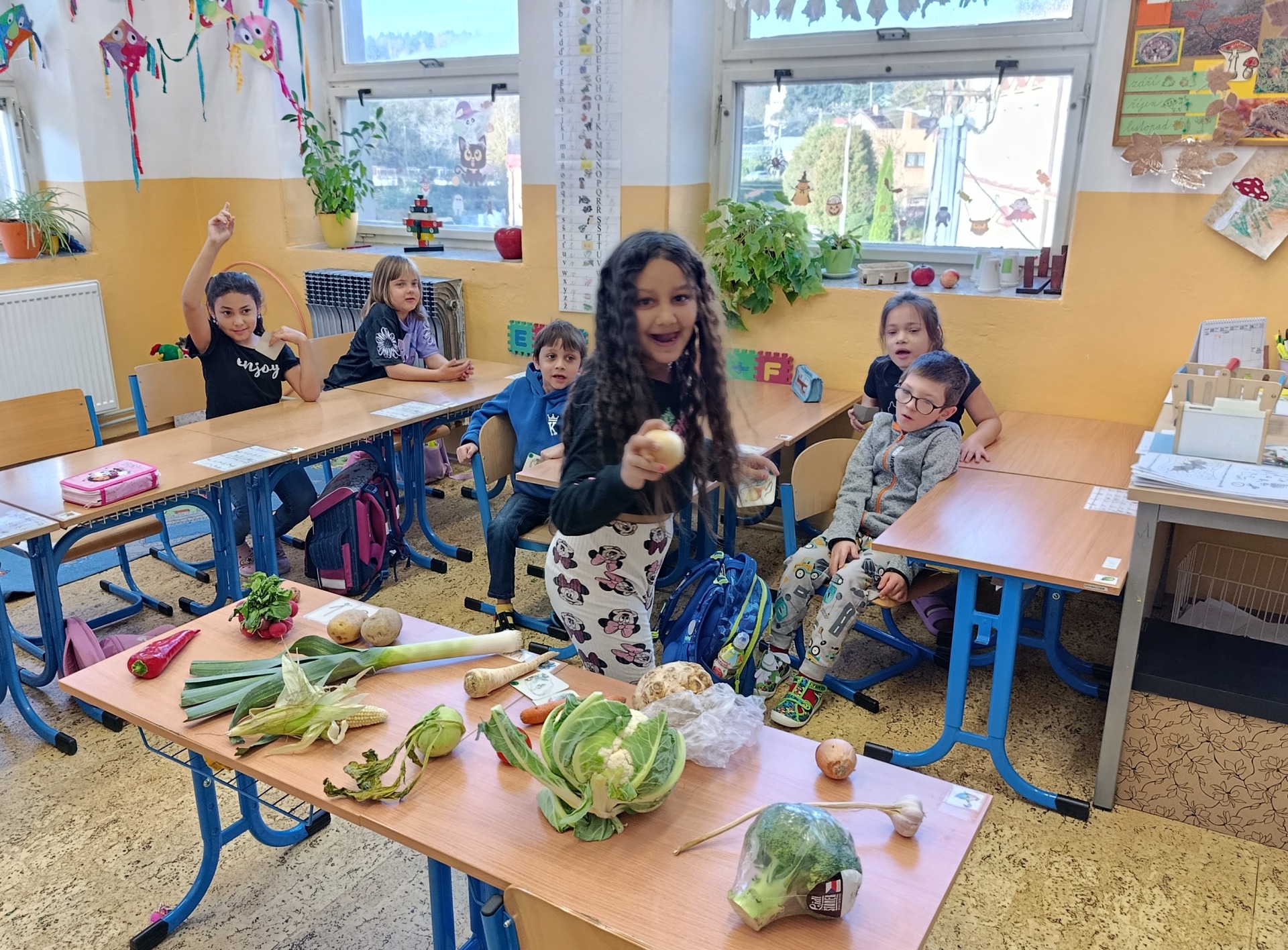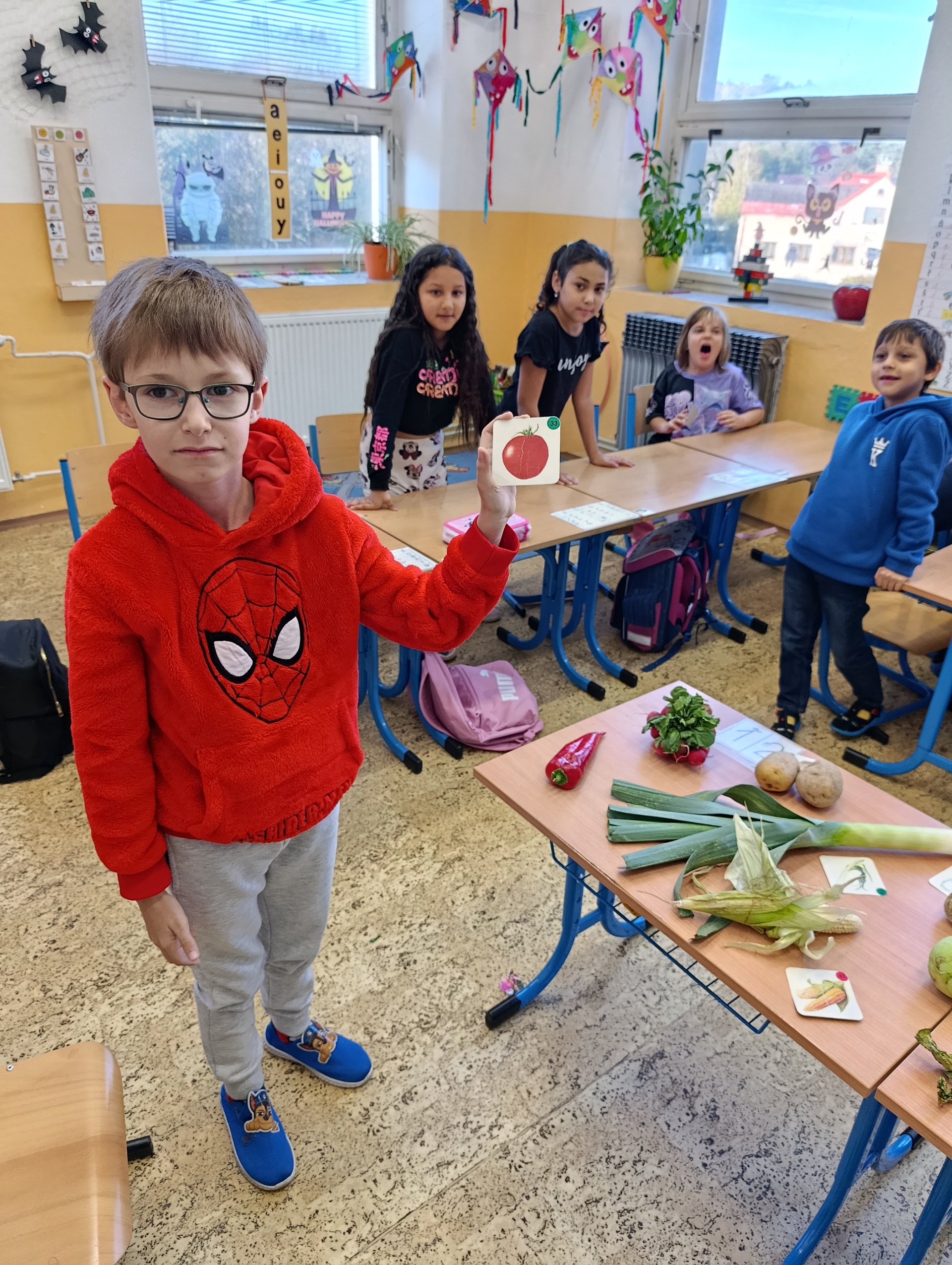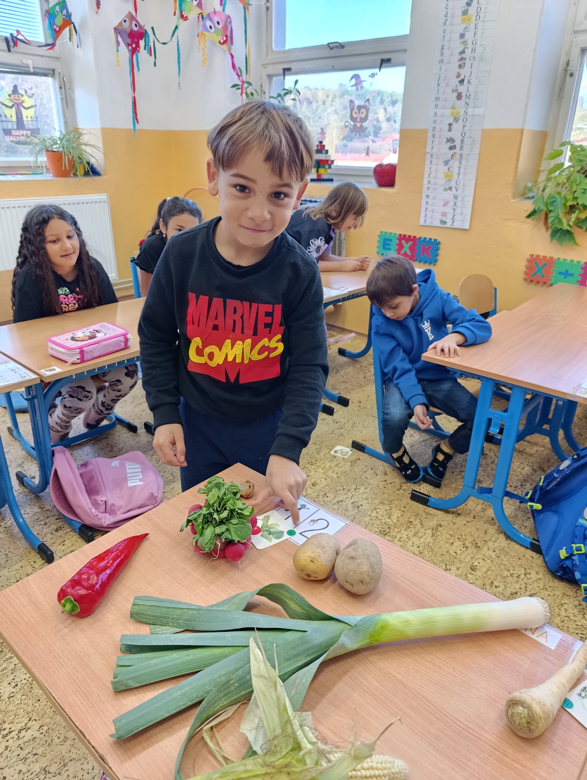 Děti vědí, že je zelenina zdravá, ale ovoce mají přece jenom raději. To se dalo poznat i ve chvílích, kdy jsme se začali o zelenině učit a určovat ji na obrázcích. Ne všechny ty zelené listy a kořínky dostaly od dětí správné jméno.