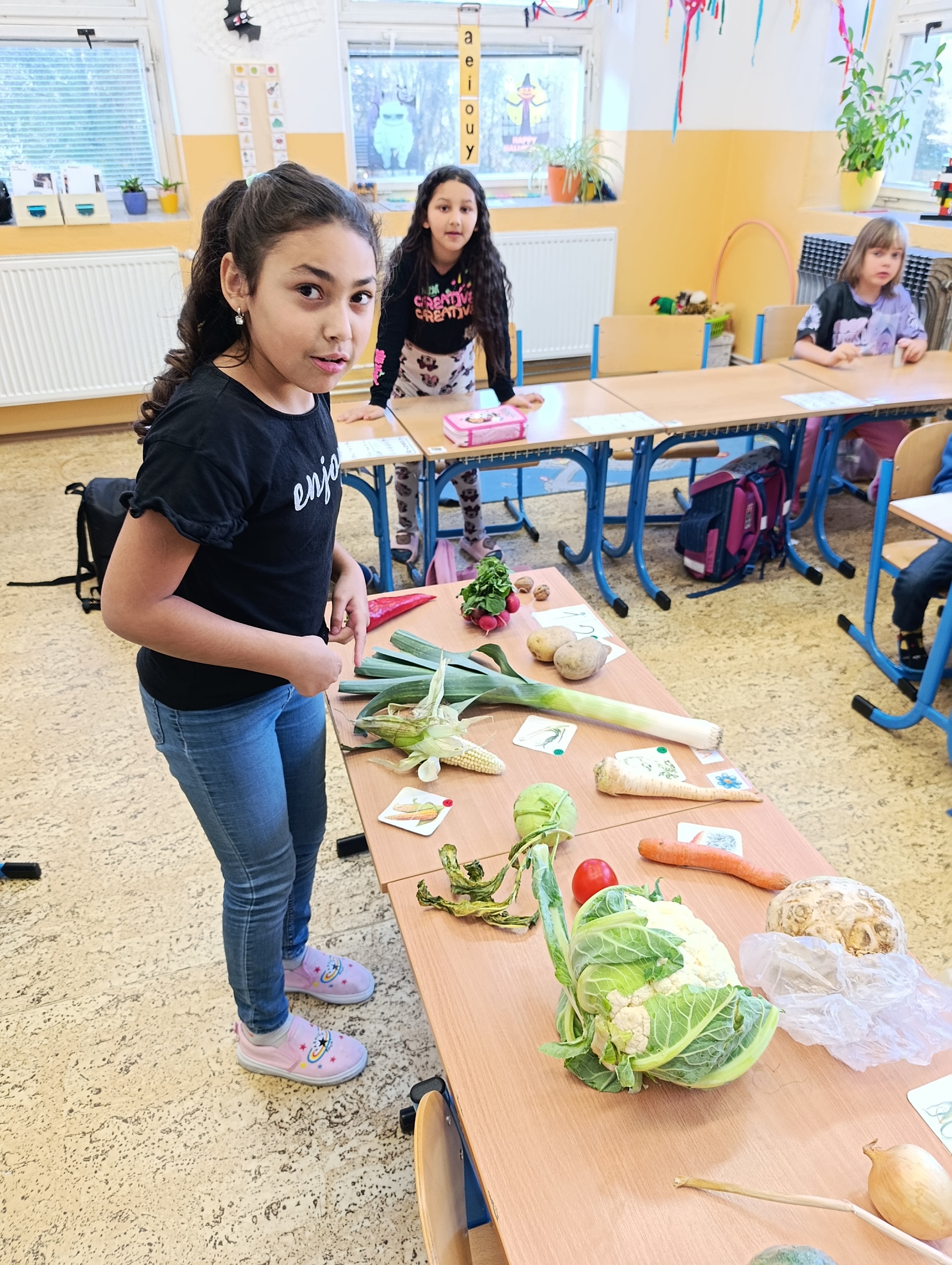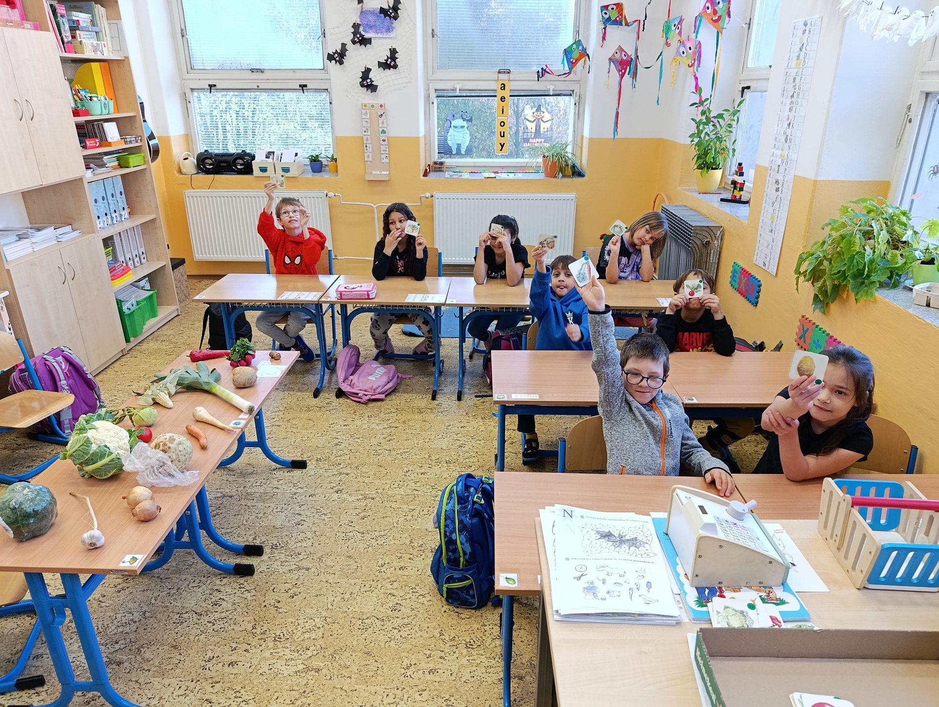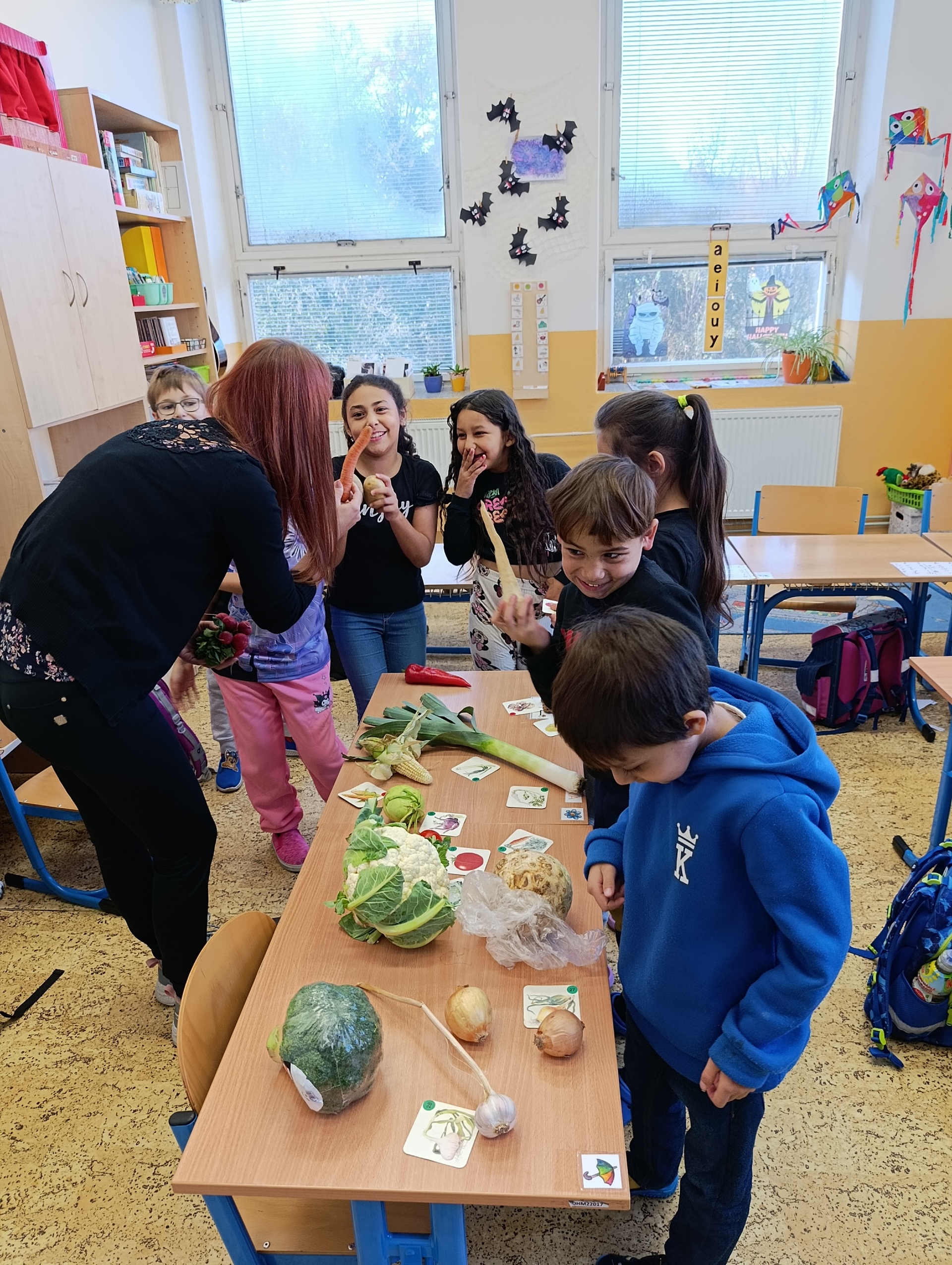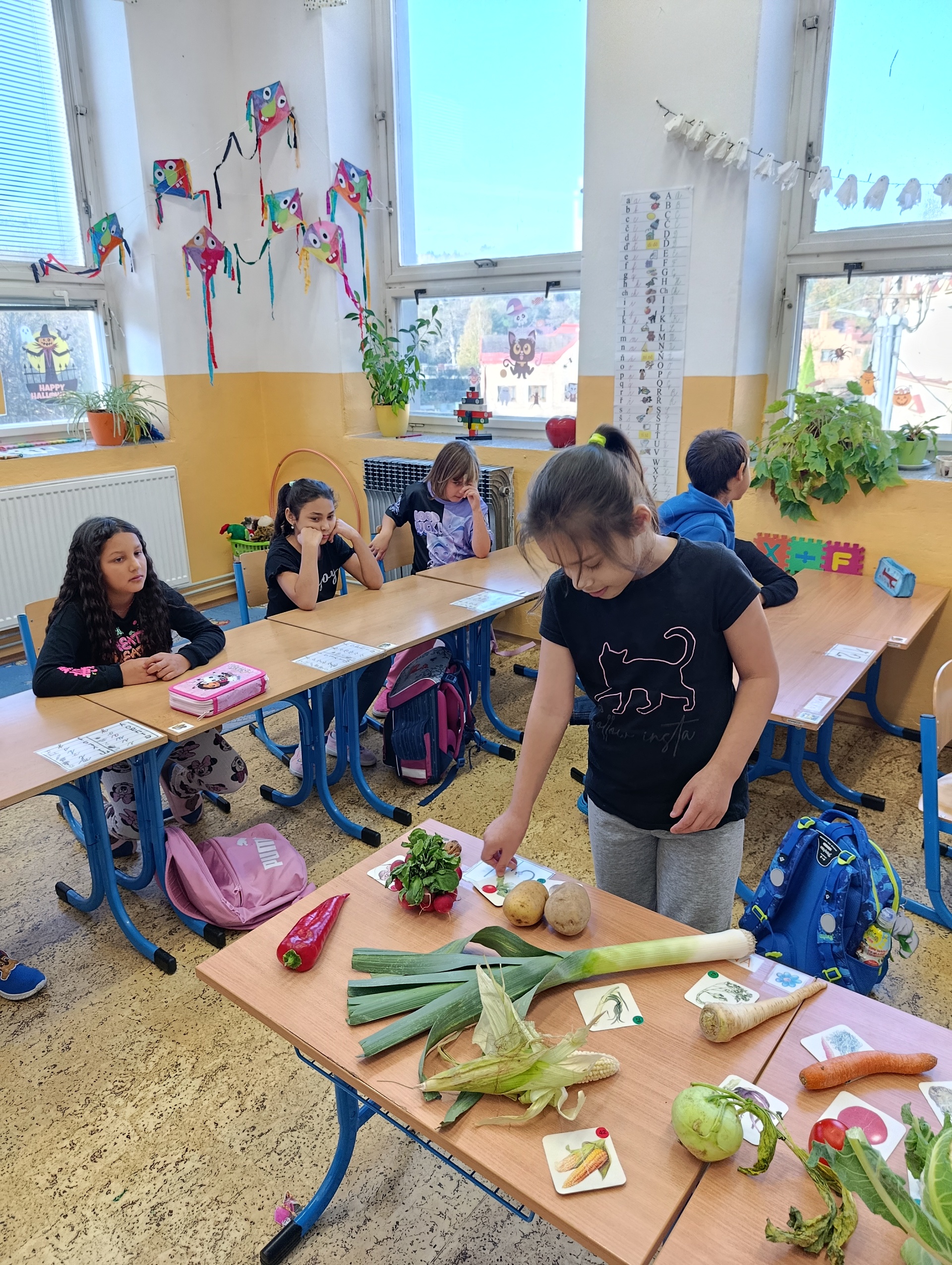 Děti vědí, že je zelenina zdravá, ale ovoce mají přece jenom raději. To se dalo poznat i ve chvílích, kdy jsme se začali o zelenině učit a určovat ji na obrázcích. Ne všechny ty zelené listy a kořínky dostaly od dětí správné jméno.
