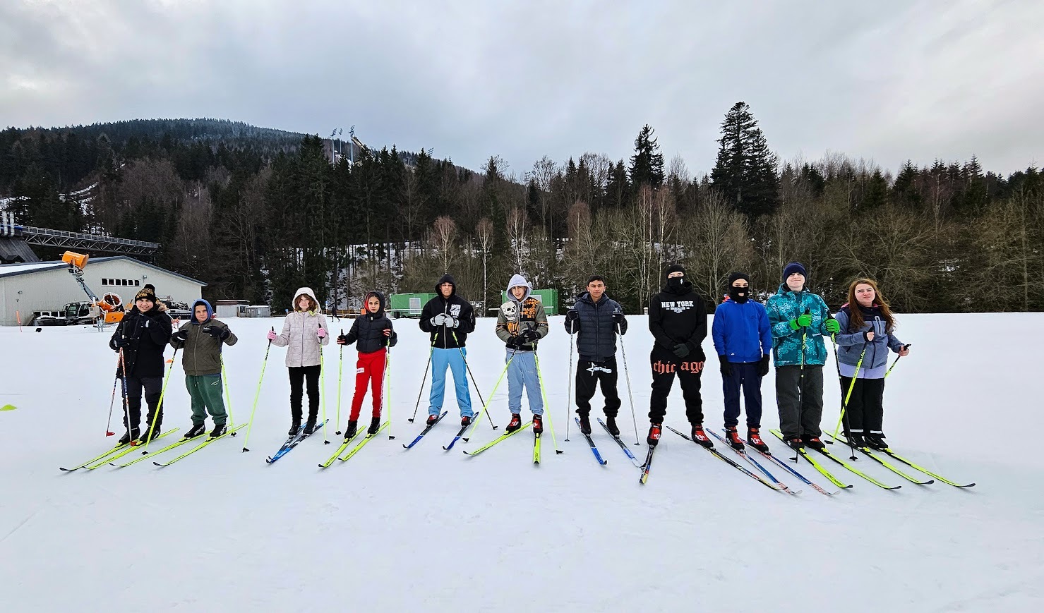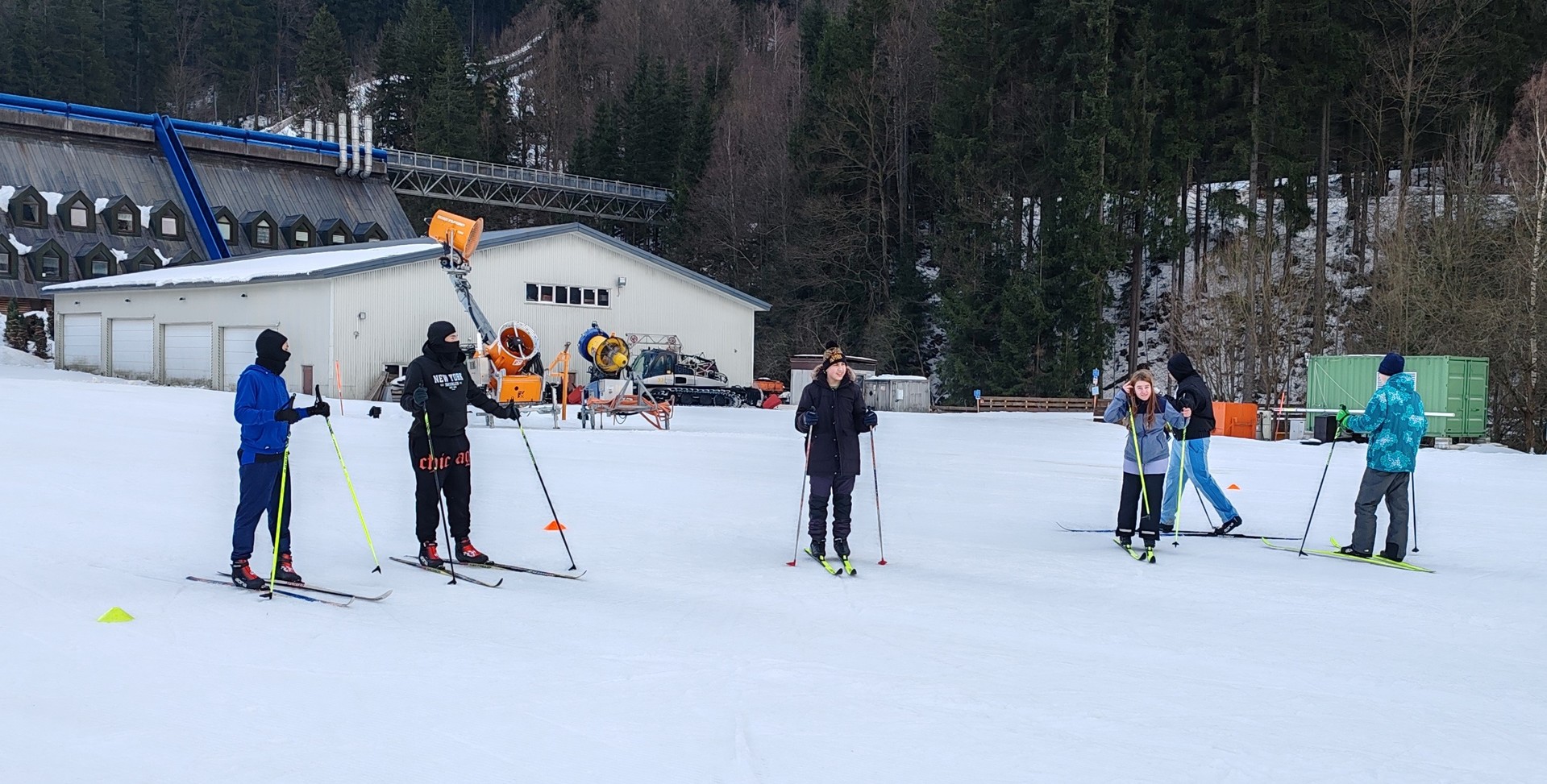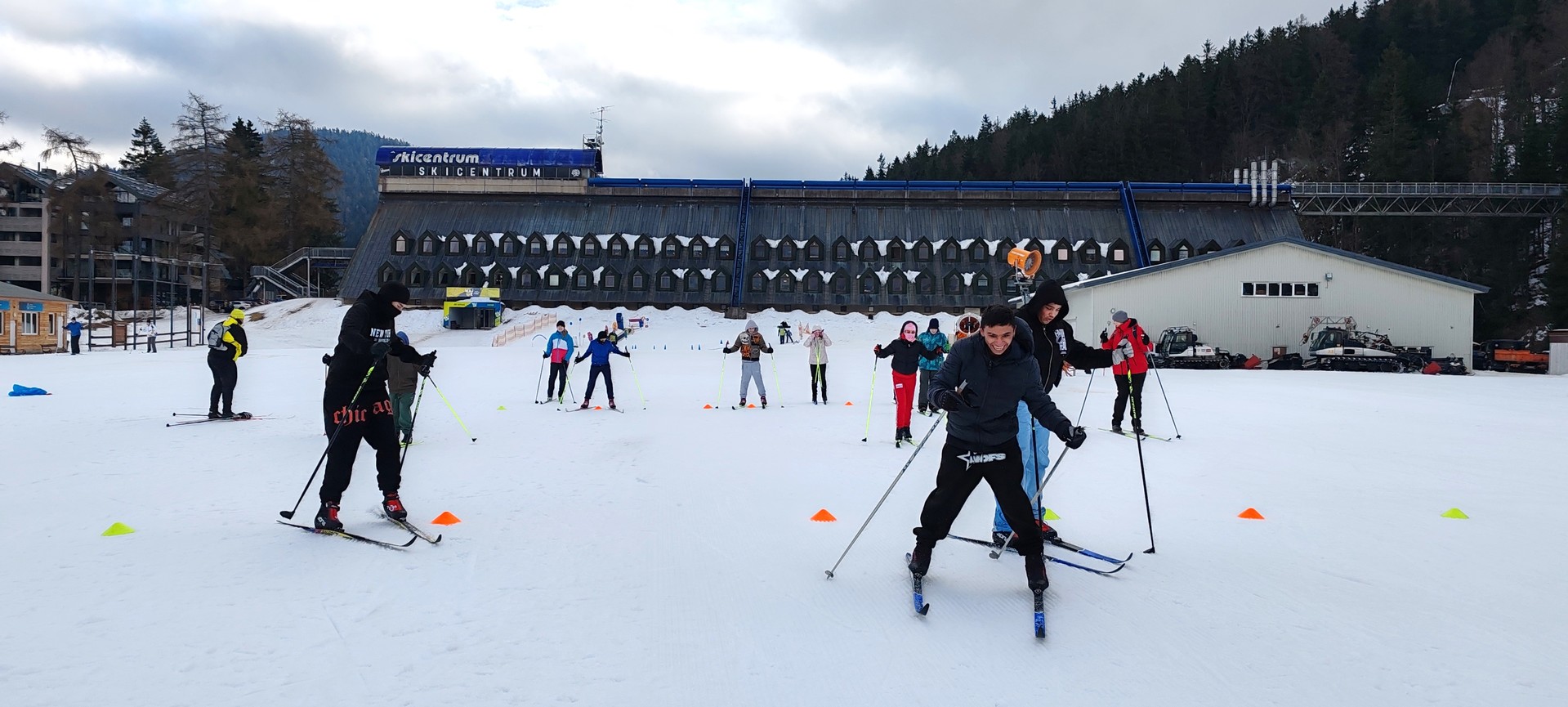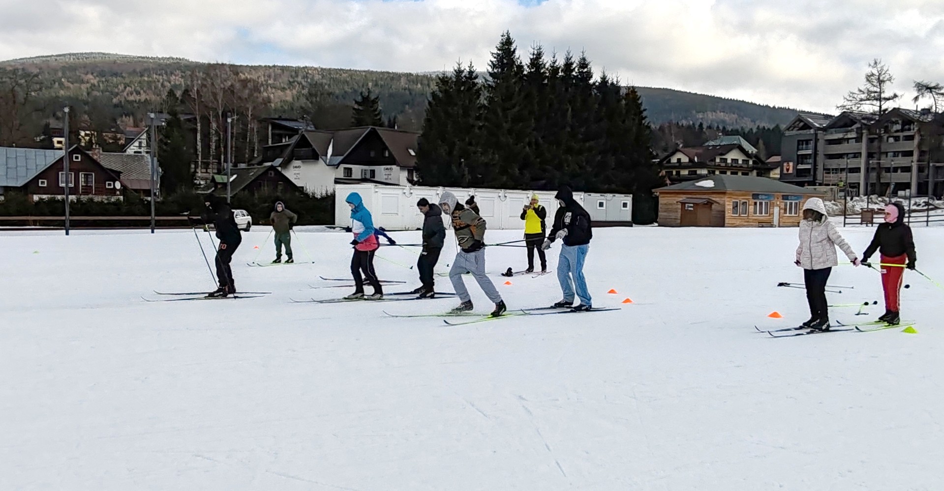 Běžecký stadion nám poskytl ideální zázemí pro zlepšování techniky, zábavné hry i odvážné sjezdy. Náš lyžařský výcvik pokračoval na vyhlášeném běžeckém stadionu v Harrachově. Trénování přímo pod slavnými mamutími můstky má svou nezaměnitelnou atmosféru a podmínky jsou zde pro výuku ideální. Program jsme zahájili trénováním běžecké techniky, kterou jsme prokládali různými hrami na sněhu. Nácvik sjezdů patřil k důležité, ale i zábavné součásti tréninku. Někteří se v rámci tréninku vydali podívat k dojezdu místní sjezdovky, která vede z Čerťáku dolů. Nejzdatnější, kteří po náročném dni měli ještě dostatek sil absolvovali vytyčenou trať na čas. Harrachovský stadion se znovu ukázal jako skvělé místo pro trénování a třeba se sem podíváme zase za rok.