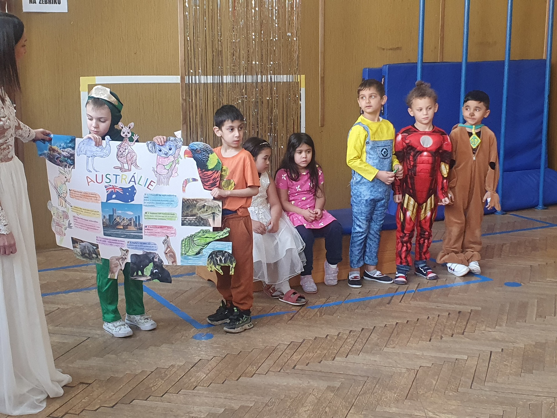 Na prvním stupni se uskutečnil veselý Olympijský karneval, kterého se zúčastnily všechny třídy včetně naší přípravné třídy. Celé dopoledne se neslo v duchu olympijských kruhů a poznávání jednotlivých kontinentů. Nejprve jsme se všichni společně sešli v tělocvičně, kde jednotlivé třídy představily své plakáty světadílů. Každá třída měla na starost jeden kontinent. Evropu, Asii, Ameriku, Afriku a přípravná třída Austrálii. Děti si připravily zajímavé informace i krásné výtvarné zpracování a ukázaly, že spolupráce jim jde opravdu skvěle. Poté jsme se přesunuli na pět stanovišť inspirovaných jednotlivými kontinenty. V Evropě jsme navštívili Itálii, zkoušeli jsme si „vyrobit“ zmrzlinu, svazovali jsme špagety a soutěžili, kdo vytvoří nejdelší špagetu. Odměnou byl kousek výborné pizzy, kterou upekla paní učitelka se svou pátou třídou. V Asii jsme si vyzkoušeli jíst hůlkami a poznávali různá koření podle vůně. V Americe nás přivítala paní učitelka v roli indiánky a společně jsme si s radostí zahráli na bubny. V Africe jsme poznávali africká zvířata a soutěžili v hodu pomerančem na koš. V Austrálii jsme si zaskákali v pytlích jako klokani a užili si spoustu legrace. Na závěr nás čekala společná diskotéka a sladká odměna. Celé dopoledne bylo plné radosti, pohybu, spolupráce i nových zážitků. Olympijský karneval jsme si všichni moc užili a budeme na něj dlouho vzpomínat.